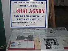 Shmuel Yosef Agnon (Hebrew: שמואל יוסף עגנון; August 8, 1887[1] – February 17, 1970)[2] was an Austro-Hungarian-born Israeli novelist, poet, and short-story writer. He was one of the central figures of modern Hebrew literature. In Hebrew, he is known by the acronym Shai Agnon (ש"י עגנון). In English, his works are published under the name S. Y. Agnon.