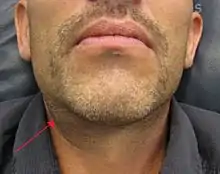 Swelling of the submandibular gland as seen from the outside