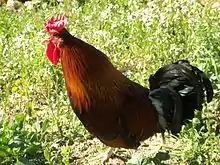 The Siciliana is an ancient Italian breed of chicken from the Mediterranean island of Sicily. It is notable for its unusual double or rose comb, for the early age at which birds reach maturity, and for the unusual shape of the eggs. The Sicilian Buttercup, bred in Australia, Great Britain and the North America, derives from it, but its long separation from the original stock has led to marked differences between the two.