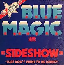 "Sideshow" is a song recorded by American R&B soul vocal quintet Blue Magic, released in 1974. It was first released on the album Blue Magic and when issued as a single it sold over a million copies, going to No.1 R&B in April 1974 and No.8 pop in the United States in that summer. Billboard ranked it as the No.19 song for 1974. In the Canadian Year-end chart, it was No.77.[1]