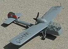 The Si 201 was a high-wing, braced monoplane with a tailwheel landing gear, powered by an Argus As 10C, mounted above the wing and driving a pusher propeller.[1] It had a boxy, fully glazed forward fuselage with room for a pilot and observer in tandem.