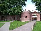 Time for preparation was needed since Kolberg lacked sufficient defensive structures, manpower and armament to withstand a siege. The defensive works of the fortress had been neglected, only the port and Kirchhof sconce had been prepared for defense when Prussia feared war with Russia and Sweden in 1805 and 1806, but they had been disarmed in September.[20] By early December 1806, the Kolberg garrison numbered 1,576 men,[21] but increased steadily during the next months due to the arrival of Prussian troops and new recruits from nearby areas.[22] Armament shortages were in part relieved by Charles XIII of Sweden, who sent rifle components from which local gunsmiths made 2,000 new rifles.[23] As of late October 1806, a total of 72 guns were mounted on Kolberg's walls:[20] 58 metal/iron cannons (8x 24 lb, 4x 20 lb, 40x 12 lb, 6x 6 lb), six iron howitzers (10 lb) and eight iron mortars (5x 50 lb, 3x 25 lb); in addition, there were four mobile 3-pounder cannons.[24] While a convoy with artillery reinforcements was held up and captured by French forces near Stettin,[24] twelve 12-pounder cannons reached Kolberg from the Prussian fortress of Danzig and the Swedish fortress of Stralsund, who each sent six guns.[25] Since no further artillery reinforcements came in, the Kolberg garrison mounted an additional 92 guns on the walls which previously had been deemed unusable and withdrawn from service; these guns were positioned at the flanks at it was speculated that they might still serve to fire rocks and canister shots at short distances.[25] Six guns captured by Schill's freikorps were also sent to Kolberg.[26]