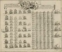 Construction on the batteries mentioned in Peter's "Instructions" began on 17 May, and some of them were finished by 24 May.[38] The Viborg Fortress: Chronicles from 1710 to 1872 mentions that during the construction, a truce-bearer was sent out from the Viborg fort with a request to Russian forces to allow passage for a courier to deliver letters to the Swedish general Georg Lybecker, but the request was denied. There are also records that show a Swedish fleet arriving at Viborg and being beaten back by the Russians.[39] However, other sources do not mention the truce-bearer or the naval battle; Fyodor Apraksin even wrote to the czar saying that he "could not imagine" how a Swedish fleet could be sent to Viborg, although he did take precautions.[40] During this time, Ivan Botsis was sent out with a fleet of galleys to block access to the bay, thus completely blockading the town and fort of Viborg.[22]
