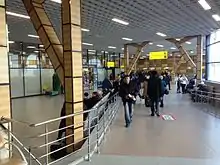 This new terminal is 1 km west from the old terminal, between the main runway and the old one, making the eastern part of the airport useless. Eventually, the old runway (01R/19L) will be rebuilt and, with the runways being spaced >1 km apart, would be capable of parallel runway operations, like at Domodedovo, Berlin or Munich. The new terminal has 8 gates to air-bridges and 8 gates to apron buses, 16 escalators and 28 lifts, 55 check-in counters and the airport terminal is able to handle 6 million passenger annually.[17][18]