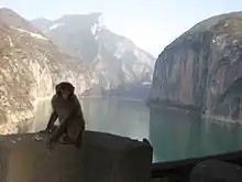 A modern macaque monkey at the Gateway of Kuizhou (Kuimen). Kuizhou was a former political division during Du Fu's time, now more-or-less Chongqing. Kuimen (literally, "Kui gate") refers to the Qutang Gorge of the Yangzi River.