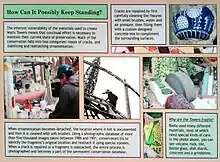 In February 2011, the Los Angeles County Museum of Art received a grant from the James Irvine Foundation to scientifically assess and report on the condition of the Watts Towers, to continue to preserve the undisturbed structural integrity and composition of the aging works of art.[19] Weather and moisture caused pieces of tile and glass to become loose on the towers, which are conserved for reattachment in the ongoing restoration work. The structures suffered little from the 1994 Northridge earthquake in the region, with only a few pieces shaken loose. An extensive restoration project by the Los Angeles County Museum of Art began in 2017.[20] The site re-opened in November 2022 when the work was finished.[21]