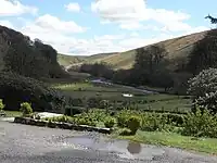 The small hamlet developed in the 19th century, when more houses were built along with St Luke's Church (1856), providing a centre for the population. The church has been designated by English Heritage as a Grade II listed building.[18] At around the same time as the construction of the church, a mine was developed alongside the River Barle. The mine was originally called Wheal Maria, then changed to Wheal Eliza. It was a copper mine from 1845–54 and then an iron mine until 1857, although the first mining activity on the site may be from 1552.[19] A restored Victorian water-powered sawmill in the village, which was damaged in the floods of 1992, has now been purchased by the National Park and returned to working order, making the footpath signs, gates, stiles, and bridges for various sites in the National Park.[20][21]