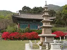 Sinwonsa is a Buddhist temple in the South Chungcheong province in South Korea. Sinwonsa is located in Yanghwari Gyeryong-myeon Gongju, and one of three main temples in Gyeryong mountain along with Donghaksa and Gapsa. The temple was built by the monk Bodeokhwasang in the 11th year (651) of King Uija's reign of Baekje, and underwent several expansions. Gaeyeonhwasang is said to have renovated the current daeungjeon in 1876.[1]