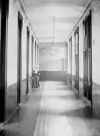 On 3 June 1848,[4] eight Sisters of Charity, Sisters Ursula Mattingly, Ann de Sales Farren, Hieronimo O'Brien, Anacaria Hoey, Clare McDurby, Mary Aloysia Lilly, Mary Eliza Dougherty, and Agatha O'Keefe,[5] arrived in Buffalo.[3] Bishop Timon had purchased an unused brick schoolhouse and adjoining cottage at Pearl Place, which he gave to the Sisters to use.[6] They outfitted it with 100 beds and living quarters for themselves.[3] On 1 October 1848, Sisters of Charity Hospital officially opened as Buffalo's first large healthcare facility, under the leadership of Sister Ursula Mattingly, DC.[4] The first patients were a group of six sailors.
