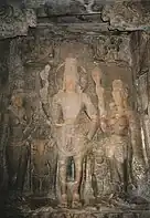 Right: 6th-century Harihara carving in Cave 3 of Badami cave temples.