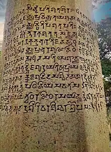 The Junagadh rock, which contains inscription of the earlier emperors, Ashoka and Rudradaman, has an inscription engraved on the orders of Skandagupta's governor Parnadatta. The inscription states that Skandagupta appointed governors of all provinces, including Parnadatta as the governor of Surashtra.[16] It is not clear if the verse refers to routine appointments made by the king, or his actions after a political turmoil resulting from a war of succession or invasion.[17] The inscription outlines several qualifications required to be the governor of Surashtra, stating that only Parnadatta met these requirements. Again, it is not clear if these were actual qualifications required to be a governor under Skandagupta's rule, or if the verse simply aims to eulogise Parnadatta.[16]