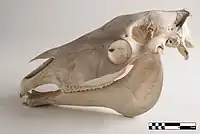 The skeletal system of the horse is a skeletal system of a horse that has three major functions in the body. It protects vital organs, provides framework, and supports soft parts of the body. Horses typically have 205 bones. The pelvic limb typically contains 19 bones, while the thoracic limb contains 20 bones.