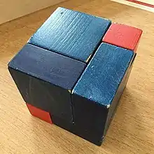The Slothouber–Graatsma puzzle is a packing problem that calls for packing six 1 × 2 × 2 blocks and three 1 × 1 × 1 blocks into a 3 × 3 × 3 box. The solution to this puzzle is unique (up to mirror reflections and rotations). It was named after its inventors Jan Slothouber and William Graatsma.