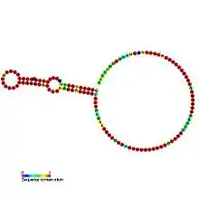 ![]() Predicted secondary structure and sequence conservation of snoR9 | |