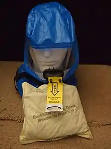 They are included in preparedness kits, after the September 11 attacks.[6][7] Preparedness lists, such as those presented by Ready.Gov, often recommend smoke hoods, although some lists use alternate names such as "fume hoods," "respirator hoods," or "self-rescue hoods." As most modern construction contains materials that produce toxic smoke or fumes when burned, smoke hoods can allow people to make a safe escape from buildings when it might not otherwise be possible.