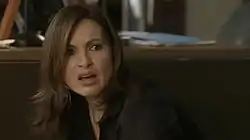 ![]() Detective Benson (Hargitay) shocked, in the aftermath of the SVU squadroom shooting. | |