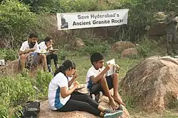 Society to Save Rocks is a not-for-profit entity established in 1996 in Hyderabad, India, by rocks enthusiasts[3] with preservation motif,[4] especially those rock formations abutting the twin cities of Hyderabad and Secunderabad[5] amidst the Deccan Plateau. Frauke Quader, Laxma Goud and others have been credited with the formation of the Society way back in the 1990s.[6]