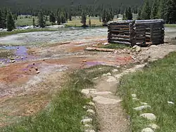 The Soda Springs Cabin is a historic structure in Yosemite National Park in the US, built over Soda Springs. It was built around the year 1889 by John Baptist Lembert, the first white settler on the Tuolumne Meadows area of Yosemite. Lembert had filed a claim to 160 acres (65 ha) in Tuolumne Meadows in 1885 after spending three summers in the area with a flock of angora goats. He built a log cabin directly over the largest soda spring in the area. Although the property was within the park boundaries, Lembert received a patent to the property in 1895. Lembert's cabin was built along the Great Sierra Wagon Road over the Sierra Nevada. He also became a guide for tourists in the high country, gaining a reputation as a naturalist and entomologist. He spent the winter months near Cascade Creek in the Yosemite Valley.[2]
