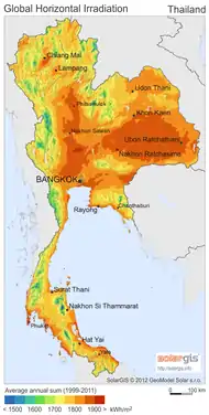 - ↑ "Global Horizontal Irradiation (GHI): Thailand". solargis. Retrieved 5 Mar 2015.