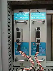 A 'data link module' (DLM) is the interface between the data link and the TFMs. A DLM has a blue label.