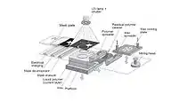 Solid ground curing (SGC) is a photo-polymer-based additive manufacturing (or 3D printing)[1] technology used for producing models, prototypes, patterns, and production parts, in which the production of the layer geometry is carried out by means of a high-powered UV lamp through a mask. As the basis of solid ground curing is the exposure of each layer of the model by means of a lamp through a mask, the processing time for the generation of a layer is independent of the complexity of the layer.[2] SGC was developed and commercialized by Cubital Ltd. of Israel in 1986[3] in the alternative name of Soldier System. While the method offered good accuracy and a very high fabrication rate, it suffered from high acquisition and operating costs due to system complexity. This led to poor market acceptance. While the company still exists, systems are no longer being sold. Nevertheless, it's still an interesting example of the many technologies other than stereolithography, its predeceasing rapid prototyping process that also utilizes photo-polymer materials.[4] Though Objet Geometries Ltd. of Israel retains intellectual property of the process after the closure of Cubital Ltd. in 2002,[5] the technology is no longer being produced.