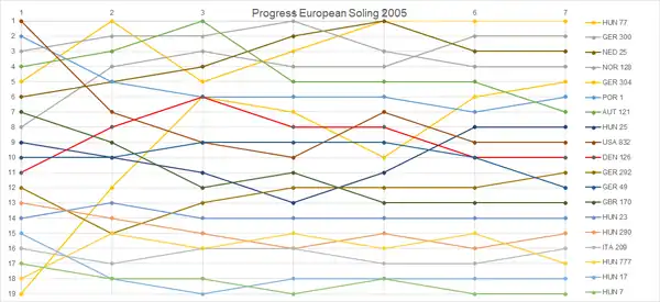 - ↑ "Soling European Championship" (ASCII). site-isaf.soticcloud.net. World Sailing. 7–12 August 2005 [2005]. Retrieved 26 January 2022.