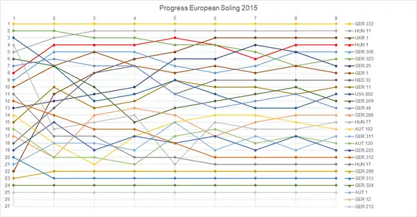 | 15 | György Wossala | Pepe Németh Kristóf Joó | HUN 77 | 4 | 4 | 11 | 11 | 17 | 17 | DSQ | 28 | 14 | 14 | 14 | 14 | 9 | 9 | 6 | 6 | 131 | 103 | |||