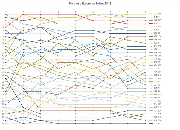 - ↑ "Soling European Championship" (ASCII). site-isaf.soticcloud.net. World Sailing. 13–17 July 2017 [2017]. Retrieved 23 February 2022.