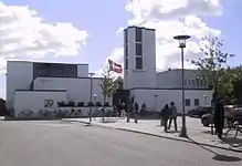 It was built between 1975 and 1976 on designs of architect Holger Jensen. It consists of a complex of box-shaped buildings, which also includes a parish hall and a confirmation halls. The church was renovated externally between 1998 and 1999, and inside between 2003 and 2005.[1]