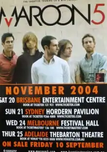 - ↑ "Maroon 5 to tour in November". The Age. Fairfax Media. August 26, 2004. Retrieved February 11, 2019.