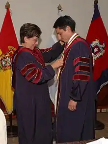 Sonia Roca as Chancellor Universidad del Pacifico conferred upon Jefferson Perez Doctorate Honoris Causa