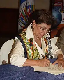 Roca began her career as a maritime attorney in the role of a civilian legal advisor to the Ecuadorian Merchant Marines [1] 1972, and returned in 1977 to direct the creation of the Direction of Maritime Affairs for Ecuador.[2] [3] [4] From 1973 to 1976 she headed the secretariat[5] of the permanent council for the Organization of American States[6] under Secretary General Galo Plaza Lasso. Where she was the Executive Secretaryl[7] for the Interamerican Commission for Women[8] and negotiated in the OAS General Assembly (Atlanta 1974) for the adoption of the International Women's Year 1975.
