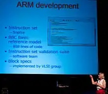 Wilson giving a public presentation on ARM development in 2009