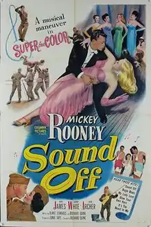 Sound Off is a 1952 American comedy film directed by Richard Quine and starring Mickey Rooney, Anne James, John Archer and Gordon Jones. The film was shot in August 1951 in SuperCinecolor for Columbia Pictures.[1]