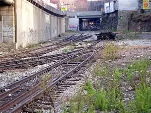 The switches at Kensington Junction were locked so that the branch was completely separated up to the Ninth Avenue & 20th Street Depot, which thereby became an unneeded facility because passenger streetcar operation had ended. At the same time, freight usage of the South Brooklyn Railway declined because of the increasing use of semi-trailer trucks. The McDonald Avenue trackage was no longer in use by 1978, and paved over by 1991.[2] After the closure of the McDonald Avenue tracks, the South Brooklyn Railway's freight operations were moved from the Second Avenue yard to the 36th–38th Street Yard, where it still operates.[4] In 1994, the last non-NYCTA customer on the line closed; the South Brooklyn Railway was then used almost exclusively for subway connections to the LIRR Bay Ridge Branch via the South Brooklyn Marine Terminal, Bush Terminal, and Industry City.[2]
