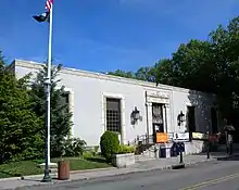 At an annual meeting in 1895, Library Trustees considered the question of obtaining a library building and Eugene V. Connett's offer of a library site on the corner of Scotland Road and Taylor Place, once a $7,500 subscription was met (equivalent to $73,000 in 2022). On May 8, 1896, the library was moved into the building on that corner. A referendum held on April 27, 1926, showed that citizens had voted ten to one in favor of the town taking over full support of the library. It thereupon became "The South Orange Public Library." In February 1929, the Village Trustees passed an ordinance providing funds to construct a rear wing on the library and to provide a Children's Room in the basement, book stacks and a balcony on the floor above, together with rehabilitation work on the older part of the building. In November 1968, the new library building on the corner of Scotland Road and Comstock Place was dedicated.[41]