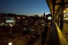 The construction of Village Hall in 1894 and the "old" library building in 1896 indicate how the village was growing by that date.[33] Horsecar service from Newark started in 1865, running via South Orange Avenue to the station. Electric trolley cars began running the line in 1893 and by about 1900 a branch of this line also ran down Valley Street into Maplewood. Another separate trolley line, eventually dubbed the "Swamp Line", ran from the west side of the station north through what is now park land and along Meadowbrook Lane into West Orange where it ended at Main Street.[39] An old postcard photo shows a station shelter at Montrose Ave. The DL&W rebuilt the railroad through town in 1914–1916, raising the tracks above street level and opening new station buildings at South Orange and Mountain Station. In September 1930, a frail Thomas Edison (he would die about a year later) inaugurated electric train service on the M&E between Hoboken and South Orange, with further extensions of service to Morristown and Dover being initiated over the coming months.[40]