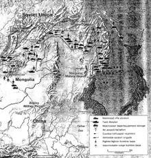 Postwar, elements of the 6th Guards Tank Army, headquartered at Choibalsan, continued to be based in Mongolia until Soviet troops withdrew from the country in 1956.[3]