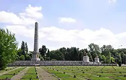 The Soviet Military Cemetery (Polish: Cmentarz Mauzoleum Żołnierzy Radzieckich) in Warsaw, Poland, is the burial place of over 21,000 Soviet soldiers who died fighting against Nazi Germany. It is the largest Soviet war cemetery in Poland and contains one of the first major monuments to be built in Warsaw to those who fought in the Second World War.[2] It is an example of socialist realist architecture.