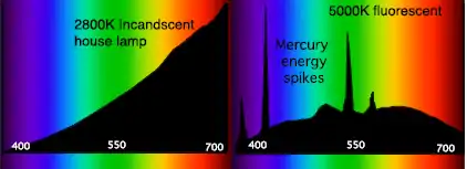 - ↑ GE Lighting. "Learn About Light: Spectral Power Distribution Curves: GE Commercial Lighting Products." Learn About Light: Spectral Power Distribution Curves: GE Commercial Lighting Products. N.p., n.d. Web. 10 Dec. 2013. <"Learn About Light: Spectral Power Distribution Curves: GE Commercial Lighting Products". Archived from the original on 2013-12-14. Retrieved 2013-12-11.>
