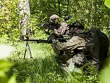 On or about 26 February 2022, during the Russian invasion of Ukraine the Russian Spetsnaz entered Kyiv in a failed attempt to hunt down Ukrainian leaders including President Volodymyr Zelenskyy.[62] The spetsnaz including the "Zaslon" unit embedded themselves within the Ukrainian population disguised in civilian clothes and Ukrainian military uniform with the intention to assassinate, eliminate or arrest leading political figures.[63] The Zaslon unit is the assassination arm for covert missions of the Foreign Intelligence Service (SVR) and the Alpha Group.[63] It is presumed that small fire teams of spetsnaz entered Ukraine before the beginning of the invasion with the mission of obtaining precise intelligence on specific personnel to plan special operations to harm or stop personnel of importance.[63]