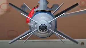 Close-up front view of a Spice-guided bomb