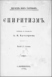 Spiritism (German: Der Spiritismus) is an 1885 book by German philosopher Eduard von Hartmann, the author of the famous treatise Philosophy of the Unconscious.[1][2] In professor Corinna Treitel's opinion, publication of this book became one of the "key events" in history of the "German occult movement."[3] This book was "one of the first works to attempt a complete psychological explanation of all occult phenomena."[1] According to Charles Massey, one of the founders of the Society for Psychical Research, publication of this book made the "most brutal blow" out of all ones that were ever directed against Spiritualism.[4][note 1]