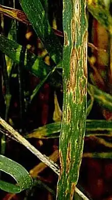 Spot blotch is a leaf disease of wheat caused by Cochliobolus sativus.[1][2] Cochliobolus sativus also infects other plant parts and in conjunction with other pathogens causes common root rot and black point.