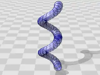 Note that the previous definition uses a vertical circular cross section. This is not entirely accurate as the tube becomes increasingly distorted as the Torsion[1] increases (ratio of the speed and the incline of the tube).