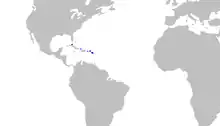 The range of the Springer's sawtail catshark is limited and overlaps that of the similar Antilles catshark; it occurs off Cuba, Jamaica, Hispaniola, Puerto Rico, the Leeward Islands, and probably the U.S. Virgin Islands. The full extent of its distribution is uncertain due to confusion with related species. Recorded from depths of 457 to 699 m (1,499 to 2,293 ft), this species is found on or near the bottom over upper continental and insular slopes.[1][4]