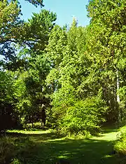 The cottage facade was removed to an Albany warehouse by state order to preserve it in 1976;[16] a quarter-century later it was put on display at the State Museum. Only the foundation clearing remains at the site. In 1982, a nearby condominium complex proposed nearby, and approved by the city, would have cleared most of Downing's remaining landscape. A lawsuit two years later alleging an insufficient environmental impact statement was settled in 1986 with the development of the farm portion of the property, close to Route 9 and the river, while the remaining landscape donated to a newly established non-profit organization, Springside Landscape Preservation, which continues to maintain the property.[8] It took formal title to the land in 1990.[17]