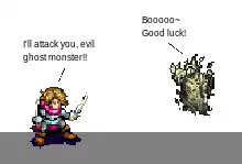 Sprite comics mainly use graphics from 1980s video games, such as Mega Man and Final Fantasy. Lore Sjöberg from Wired stated that sprite comics "re-create the feel of [such games] with a minimum of artistic effort." Penny Arcade's Mike Krahulik pointed out that sprite comics are a good way for people who can't draw well to create comics.[3] Cruz pointed out that the aesthetic has "evolved and flourished in a variety of media" since. However, the style is also commonly criticized. Cruz described sprite comics as "the favorite style for the laziest webcomic creators,"[2] while Sjöberg pointed out that sprite comics are often seen as substandard by comic fans.[3] Both Chris Dlugosz and Michael Zole (Death to the Extremist) have criticized the style, Zole stating that creators of sprite comics "seem to think that they're scoring humor points just by reusing old pixelated characters," and Dlugosz devoting his webcomic Pixel explicitly to making fun of the practice.[5]