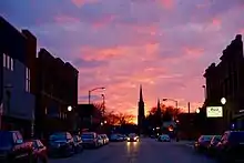 The Church of St. Augustine that stands today was erected to near completion under the supervision of Fr. Daniel O'Sullivan. Bishop Joseph Cotter officiated at the laying of the cornerstone on April 24, 1894. Fr. O'Sullivan died on June 21, 1896, and the church was completed under the direction of his successor, Fr. Edward Devlin. It was dedicated November 26, 1896.[2] The church is constructed from red pressed brick with red sandstone trim quarried at Bayfield, Wisconsin.[3]