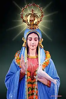 - In the left hand, Edooramma holds a 'white dove', and in her right hand there is a rosary. This means that she spreads peace on earth. It is through the way of rosaries that she spreads the peace.